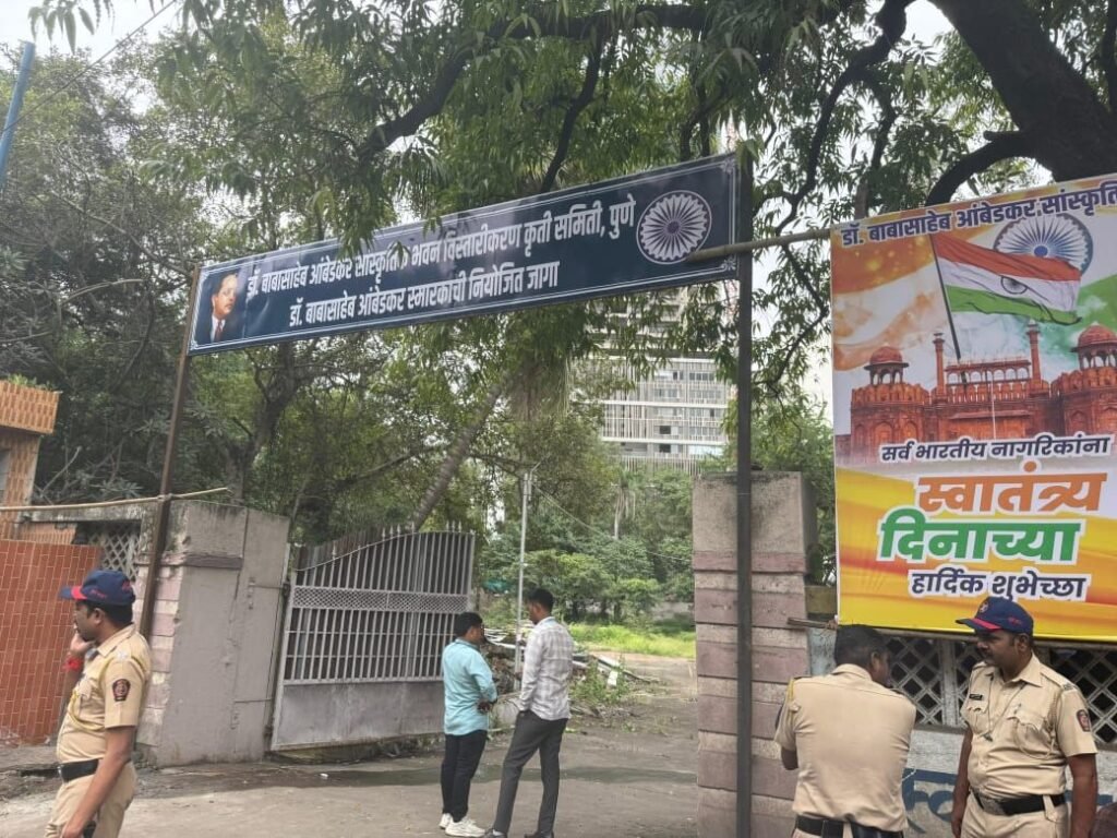 पुणे : मंगळवार पेठ येथील एमएसआरडीसी ची जागा डॉ. बाबासाहेब आंबेडकर सांस्कृतिक भवन विस्तारीकरणासाठी अर्थात बाबासाहेबांच्या राष्ट्रीय स्मारकासाठी उपलब्ध व्हावी या मागणीसाठी उद्या होणाऱ्या आंदोलनाच्या पार्श्वभूमीवर आज मध्यरात्री बहाद्दर भीमसैनिकांनी जागेच्या गेटवर डॉ. बाबासाहेब आंबेडकर स्मारकाची नियोजित जागा असा फलक लावला आहे. हा फलक लावल्यामुळे आंबेडकरी चळवळीमध्ये चैतन्य उसळले असून उद्याचे आंदोलन अधिक व्यापक व शांततेत होण्याचे स्पष्ट संकेत यातून मिळत आहेत.