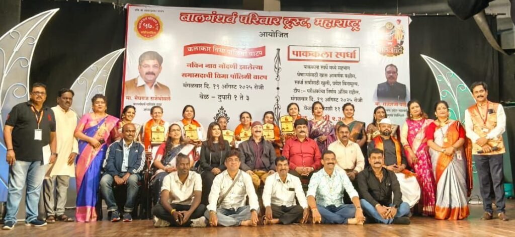 बालगंधर्व परिवार ट्रस्ट, महाराष्ट्रच्या वतीने पाककला स्पर्धा उत्साहात संपन्न-जेष्ठ कलावंतांना विमा पॉलिसी चे वाटप