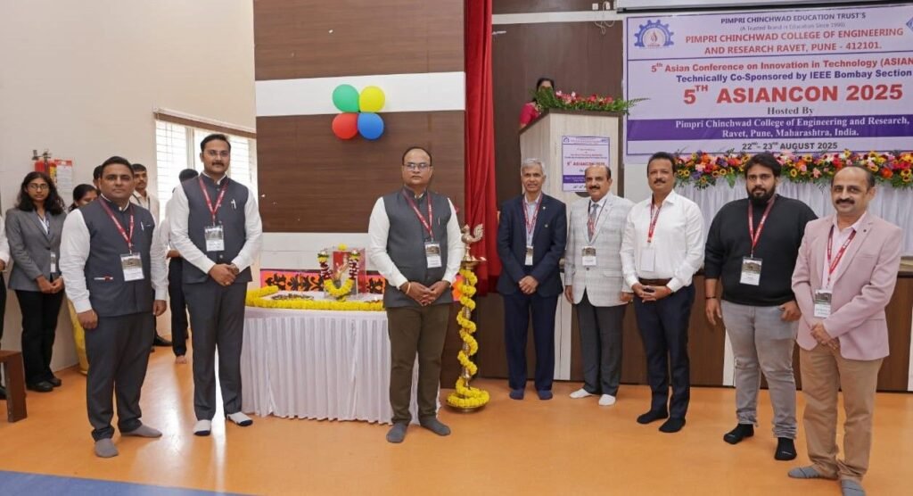 पिंपरी चिंचवड एज्युकेशन ट्रस्ट (पीसीईटी) संचालित रावेत येथील पिंपरी चिंचवड कॉलेज ऑफ इंजिनिअरिंग ॲन्ड रिसर्च (पीसीसीओईआर) आणि आयईईई यांच्या सहयोगाने आयोजित केलेल्या पाचव्या ‘एशियाकॉन -२५’ आंतरराष्ट्रीय परिषदेचे उद्घाटन डॉ. गोसावी यांच्या हस्ते करण्यात आले. यावेळी सावी इन्फ्रास्ट्रक्चरचे संचालक डॉ. विकास पाटील, आयईईईचे डॉ. शशिकांत पाटील, कॅपजेमिनीचे मोनिश के., उद्योजक नरेंद्र लांडगे, पीसीसीओईआरचे संचालक डॉ. हरिश तिवारी, डॉ. राहुल मापारी, डॉ. विजयालक्ष्मी कुंभार आदी उपस्थित होते. यावेळी ‘एशियाकॉन’ स्मरणिकेचे प्रकाशन उपस्थितांच्या हस्ते करण्यात आले.