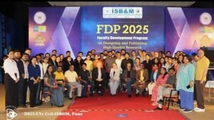 इंटरनॅशनल स्कूल ऑफ बिझनेस अँड मीडिया (ISB&M), पुणे येथे “उत्कृष्ट दर्जाचे संशोधन डिझाईनिंग व पब्लिशिंग” या विषयावर आंतरराष्ट्रीय फॅकल्टी डेव्हलपमेंट प्रोग्रॅम (FDP) 2025 पार पडला. संस्थापक-अध्यक्ष डॉ. प्रमोद कुमार व डॉ. अरुण जोशी यांच्या सहकार्याने आयोजित या चार दिवसीय हायब्रीड कार्यक्रमात ६५ हून अधिक संशोधक सहभागी झाले.