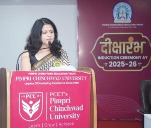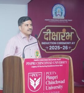 पिंपरी चिंचवड विद्यापीठात अभियांत्रिकी विभागाच्या ‘दीक्षारंभ’ कार्यक्रमात विद्यार्थ्यांचे स्वागत