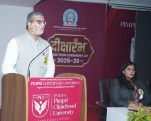 पिंपरी चिंचवड एज्युकेशन ट्रस्ट (पीसीईटी) संचालित पिंपरी चिंचवड विद्यापीठ, साते मावळ येथे शैक्षणिक वर्ष २०२५-२६ मध्ये अभियांत्रिकी आणि तंत्रज्ञान विद्या शाखेत प्रवेश घेतलेल्या विद्यार्थी आणि त्यांच्या पालकांसाठी ‘दीक्षारंभ’ समारंभाचे आयोजन करण्यात आले होते. यावेळी मास्टर कार्ड पुणे सॉफ्टवेअर इंजिनिअरिंग विभागाच्या संचालिका प्राजक्ता निरगुडकर, पीसीयुचे प्र-कुलगुरू डॉ. सुदीप थेपडे, स्कूल ऑफ इंजिनीअरिंग अँड टेक्नॉलॉजीचे विभाग प्रमुख डॉ. रामदास बिरादार, अभियांत्रिकी विभाग अधिष्ठाता डॉ. विजय पाटील आदी उपस्थित होते.