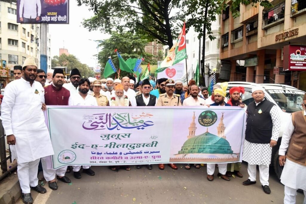 सिरत कमिटीच्या वतिने आयोजित केलेल्या मुख्य मिरवणुकीची सुरुवात नाना पेठेतील मन्नूशाह मशिदीपासून झाली. यावेळी सह पोलिस आयुक्त रंजन कुमार , पोलिस उपायुक्त विवेक मासाळ , मौलाना ज़मीरुद्दिन, मौलाना निजामुद्दीन फखरुद्दीन, मौलाना खालिद निजामी, मौलाना गुलाम अहमद खान , रफीउद्दिन शेख ,माजी आमदार मोहन जोशी, रिपब्लिकन सोशालिस्ट पाक्षाचे राहुल डंबाळे, राष्ट्रवादी कॉंग्रेसचे प्रशांत जगताप , माजी नगरसेवक अविनाश बागवे, डॉ. सिध्दार्थ धेंडे, सिराज बागवान, जावेद खान, आबिद सय्यद , जावेद शेख , हाजी नजीर तांबोळी , आसिफ शेख , सूफियान कुरैशी आदि मान्यवर उपस्थित होते.