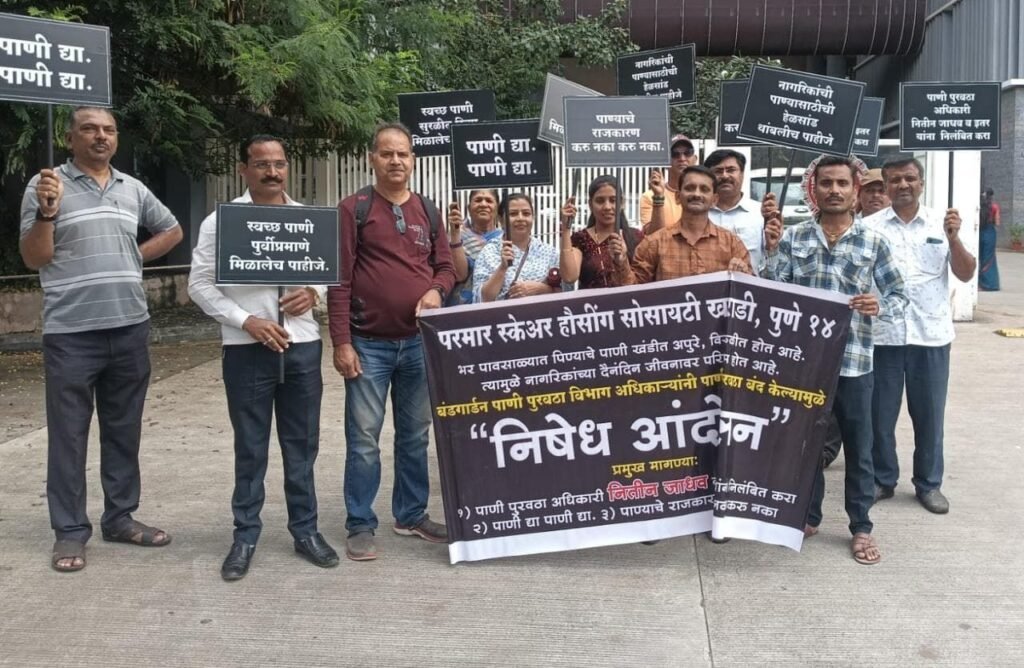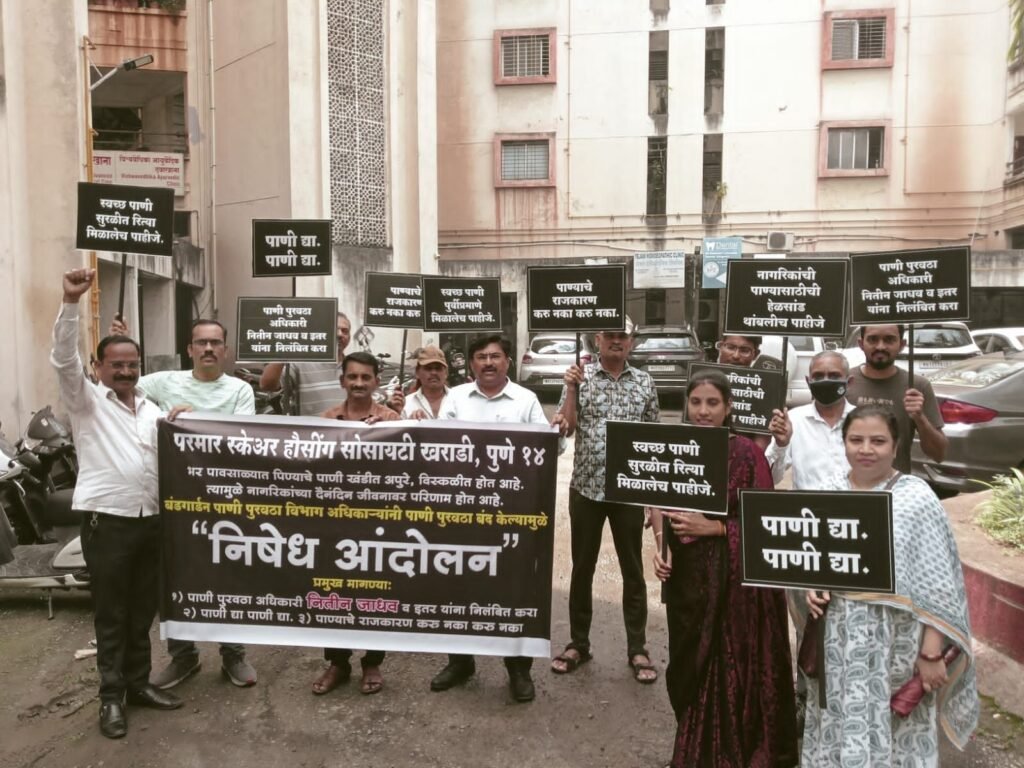 खराडीतील परमार स्क्वेअर सोसायटीला पाण्याचा तुटवडा; जिल्हाधिकारी कार्यालयासमोर आंदोलन – ८ दिवसांत तोडगा न निघाल्यास आमरण उपोषणाचा इशारा